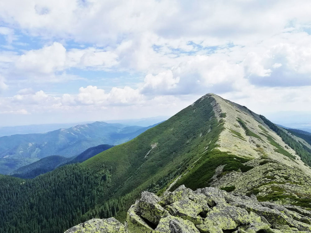 Про Довбушанку часто говорять як про «вершину з характером». Тут майже немає легких подарунків: навіть у хорошу погоду підйом відчувається, а кам’янисті ділянки змушують йти уважно й неквапливо. Зате нагорі відкривається той самий ґорґанський простір — хребти хвилями, полонини й далекі силуети Чорногори, коли видимість дозволяє.