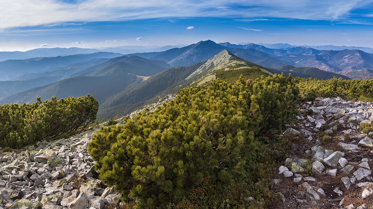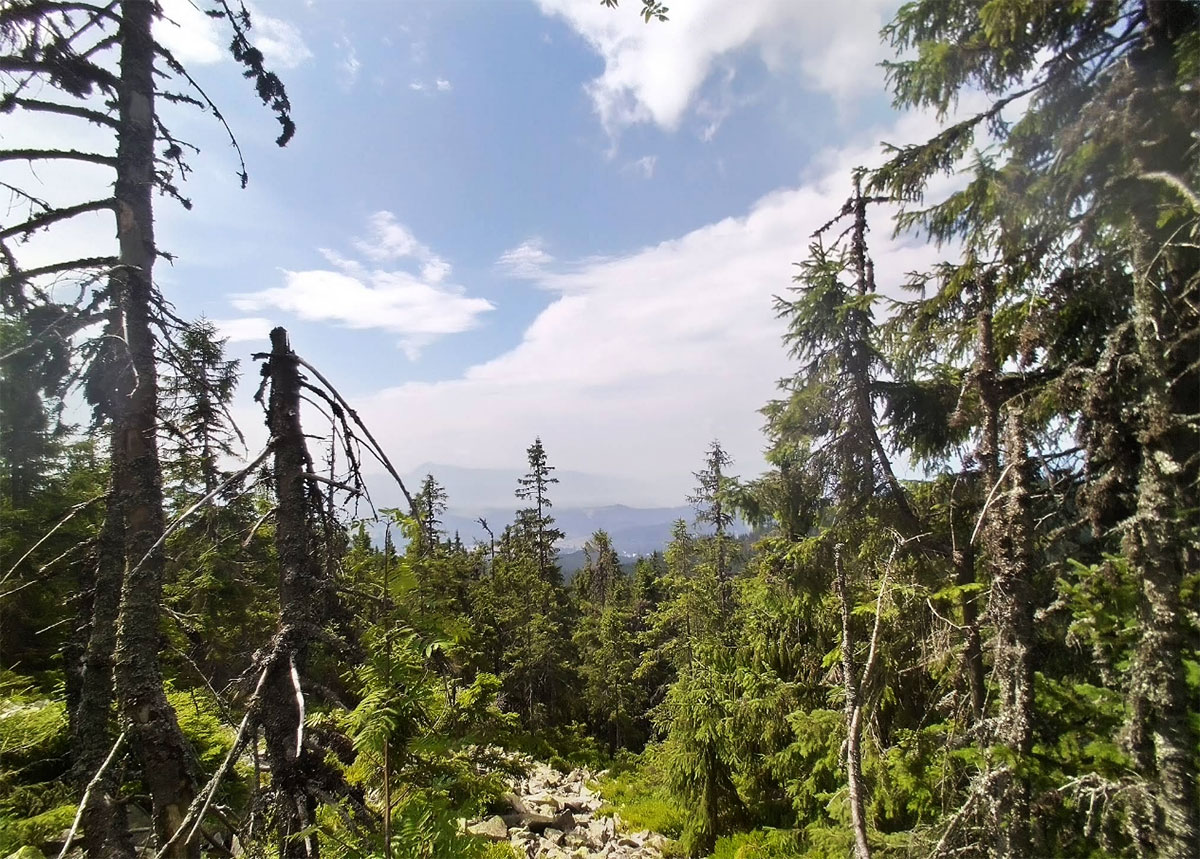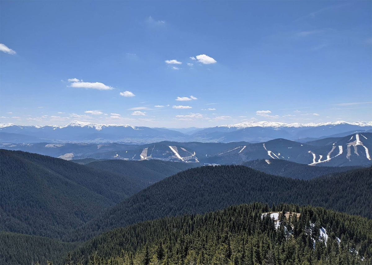 С вершины Малого Горгана открываются виды на другие «звезды» этого массива — Довбушанку, Ведмежик и соседние хребты. Если повезет с погодой, это одно из тех мест, где хорошо чувствуется масштаб Карпат: кругом волнами лежат леса, горные долины и каменные кучи, а цивилизация кажется очень далекой.