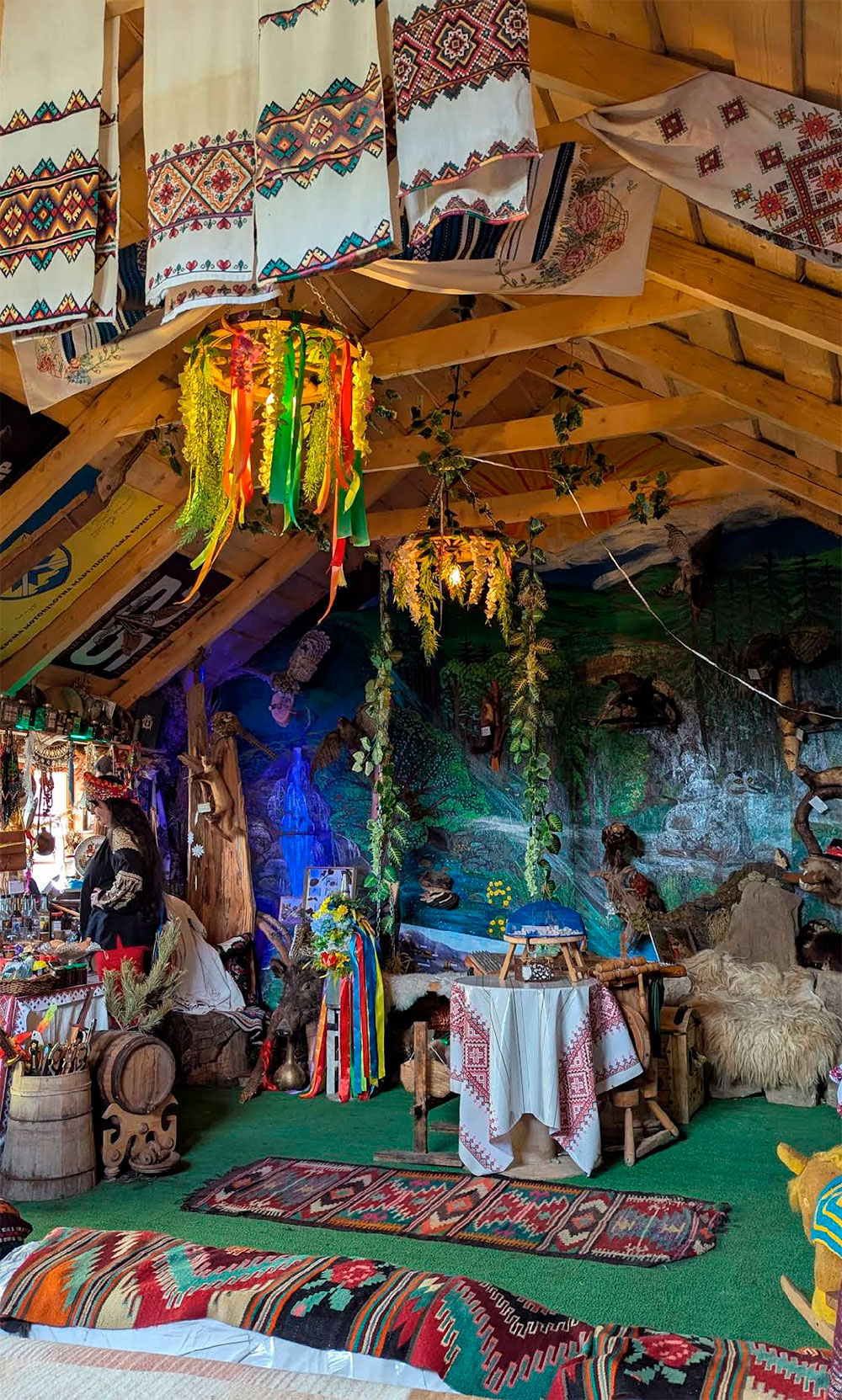 Сами основатели музея говорят, что здесь «совмещаются два мира – мир лесных духов и гуцульского быта». В помещении, оформленном как уютный гуцульский дом, собраны уникальные экспонаты из разных уголков Карпат: старинные предметы быта, одежда, музыкальные инструменты, охотничьи трофеи, деревянные изделия, вещи, связанные с традиционными ремеслами. Особое внимание привлекают две трембиты, изготовленные мастерами из горных деревень, — их называют одними из самых интересных экспонатов музея.