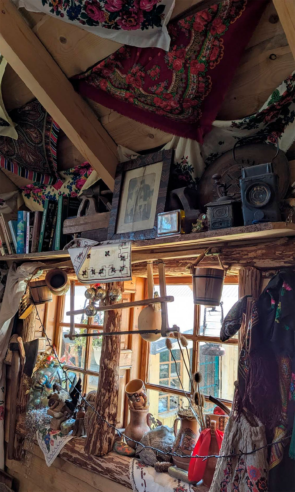 Атмосфера здесь очень живая: это не «стерильный» музей с табличками, а скорее увлекательный рассказ, в котором каждая вещь имеет свою историю. Хозяева делятся воспоминаниями о том, как собирали экспонаты, объясняют, как те или иные предметы использовались в повседневной жизни, символизирующие орнаменты на вышивках и деревянных резьбах. Одни комнаты больше напоминают этнографическое пространство, другие — как бы выходят в свет карпатских духов, легенд и представлений о природе.