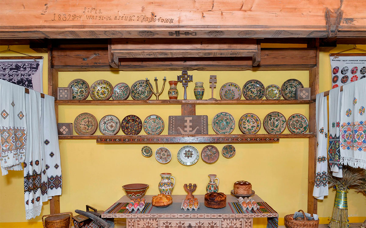 Кроме традиционной одежды и бытовых предметов в музее есть и более необычные экспонаты. Среди них — каменные, деревянные или глиняные объекты, связанные с обрядами, старые фотографии, предметы, рассказывающие о верованиях и представлениях гуцулов о мире. Именно благодаря акценту на символах этот музей часто называют одним из самых колоритных регионов.