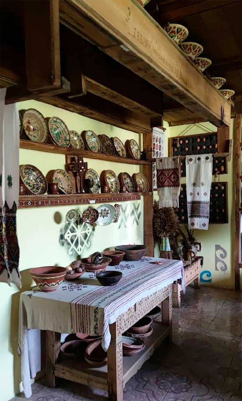 В отличие от крупных городских музеев здесь все очень камерно и лично. Экспозиция находится в нескольких комнатах и построена вокруг идеи символов: каждый предмет не просто вещь, а носитель определенного значения. На полотенцах, вышитых рубашках, резных деревянных изделиях, керамике можно увидеть древние знаки, передаваемые из поколения в поколение. Хозяева музея объясняют, что означают орнаменты, почему именно такие узоры использовались для оберегов, свадебных вещей или повседневной одежды.